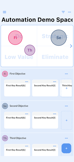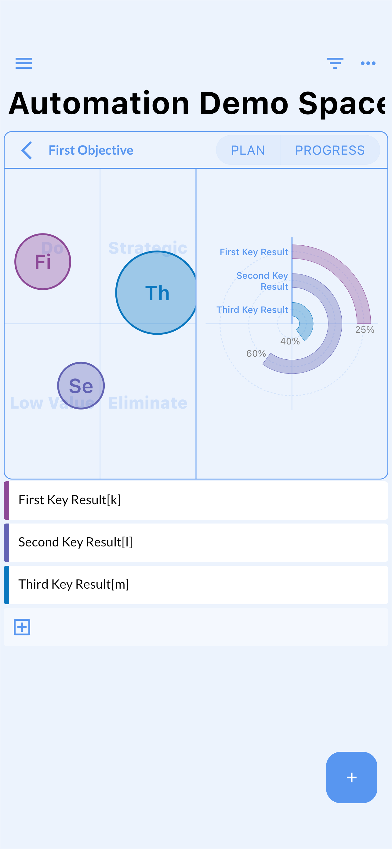 Define your target for each Key Result, enter the progress and viszalize it using Race Charts.