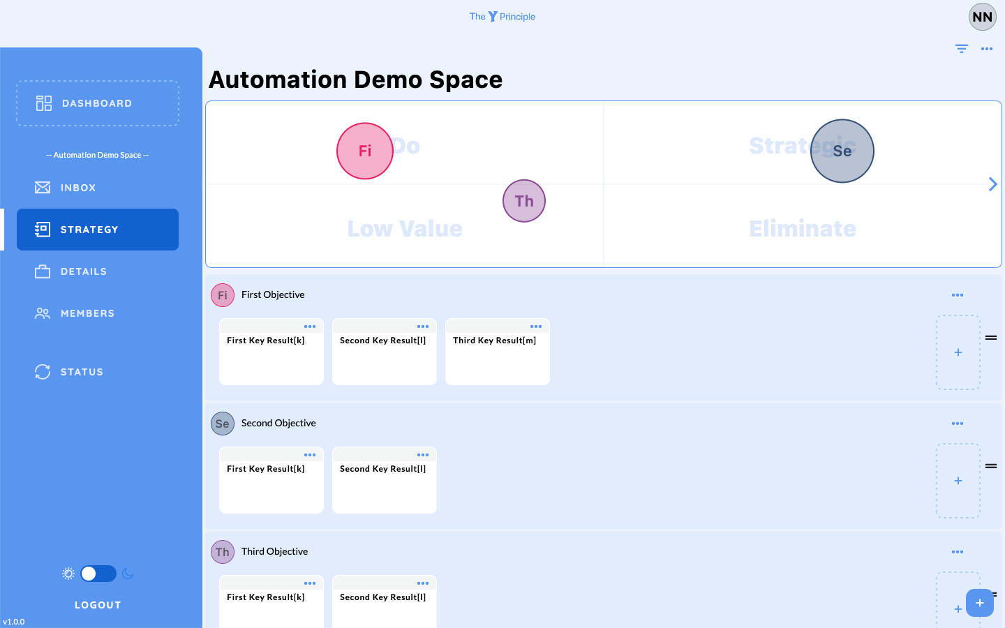 Built around the OKR idea by Andy Grove the Y Principle App helps you prioritize the objectives you want to achieve and define the key results you need